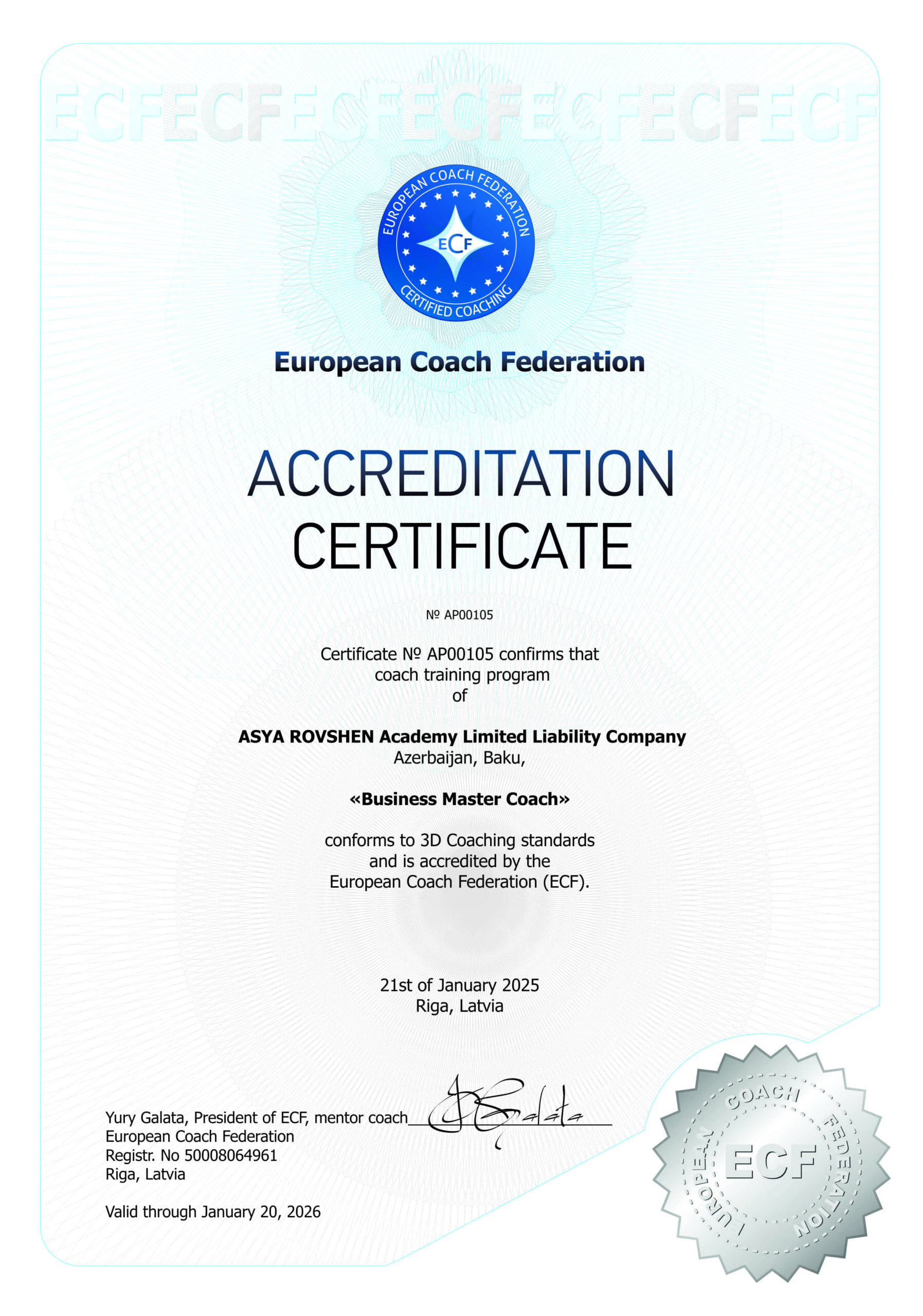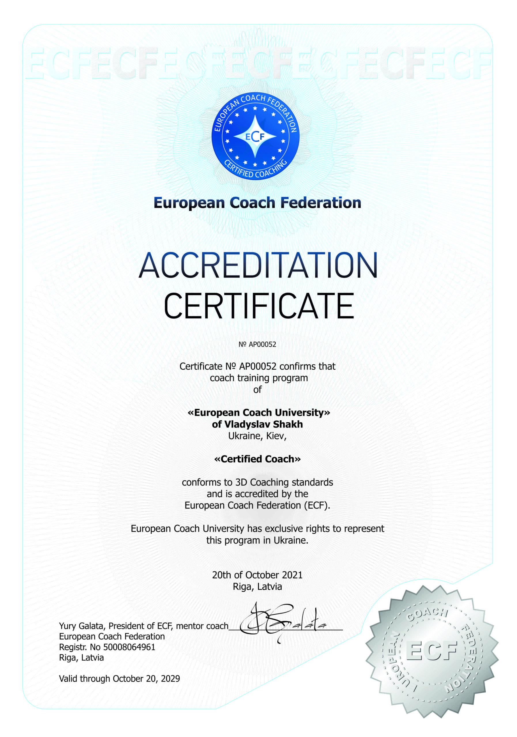 26. Programma: Certified Coach Kompānija: European Coach University Atbildīgā persona: Vladyslav Shakh Valsts: Ukraine http://eurocoachuniversity.com